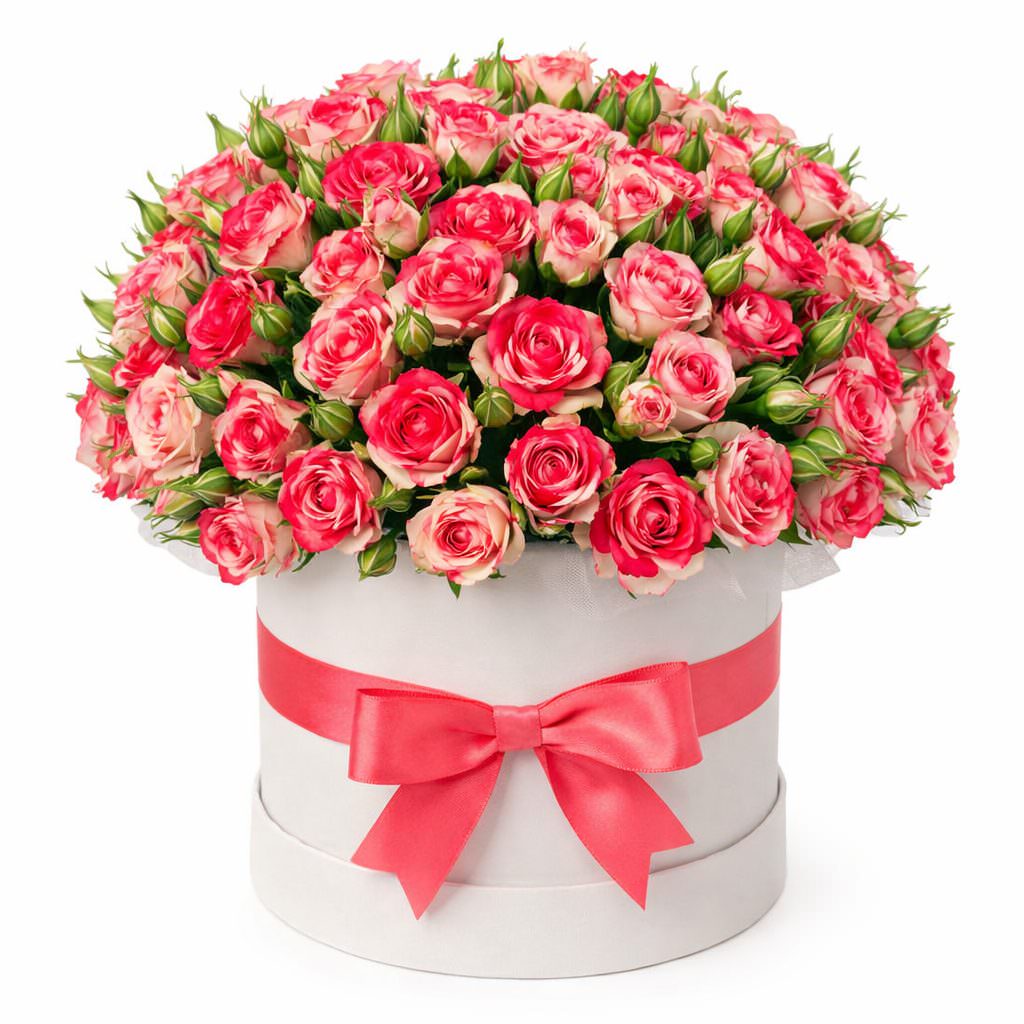 Очаровательная розово-белая гамма кустовых роз Эквадор создаёт атмосферу нежности и радости. Цветы аккуратно размещены в стильной шляпной коробке белого цвета, украшенной яркой розовой лентой, завязанной в бант. Такая композиция станет прекрасным подарком на День Святого Валентина для любимой. Подойдет для создания романтической атмосферы на ужине.
