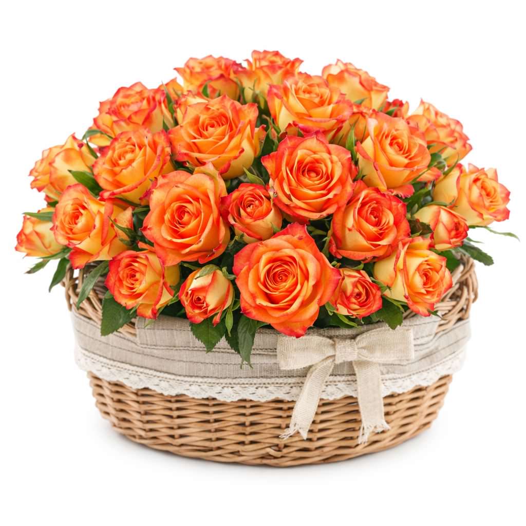 Корзина с красивыми цветами «Цветочный рассвет» с гарантией качества, цены и быстрой доставки!
