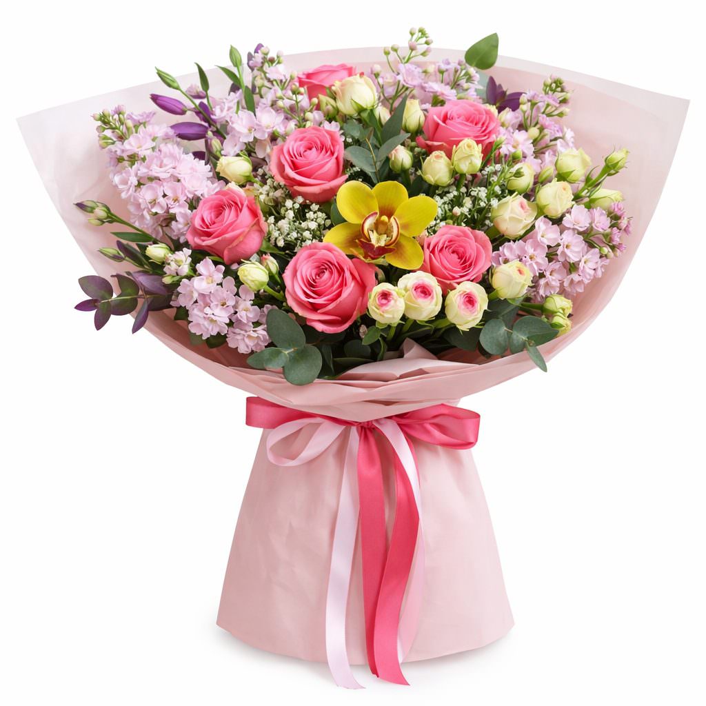 | Состав | Маттиола, Эвкалипт, Розы, Кустовые розы, Орхидеи |
