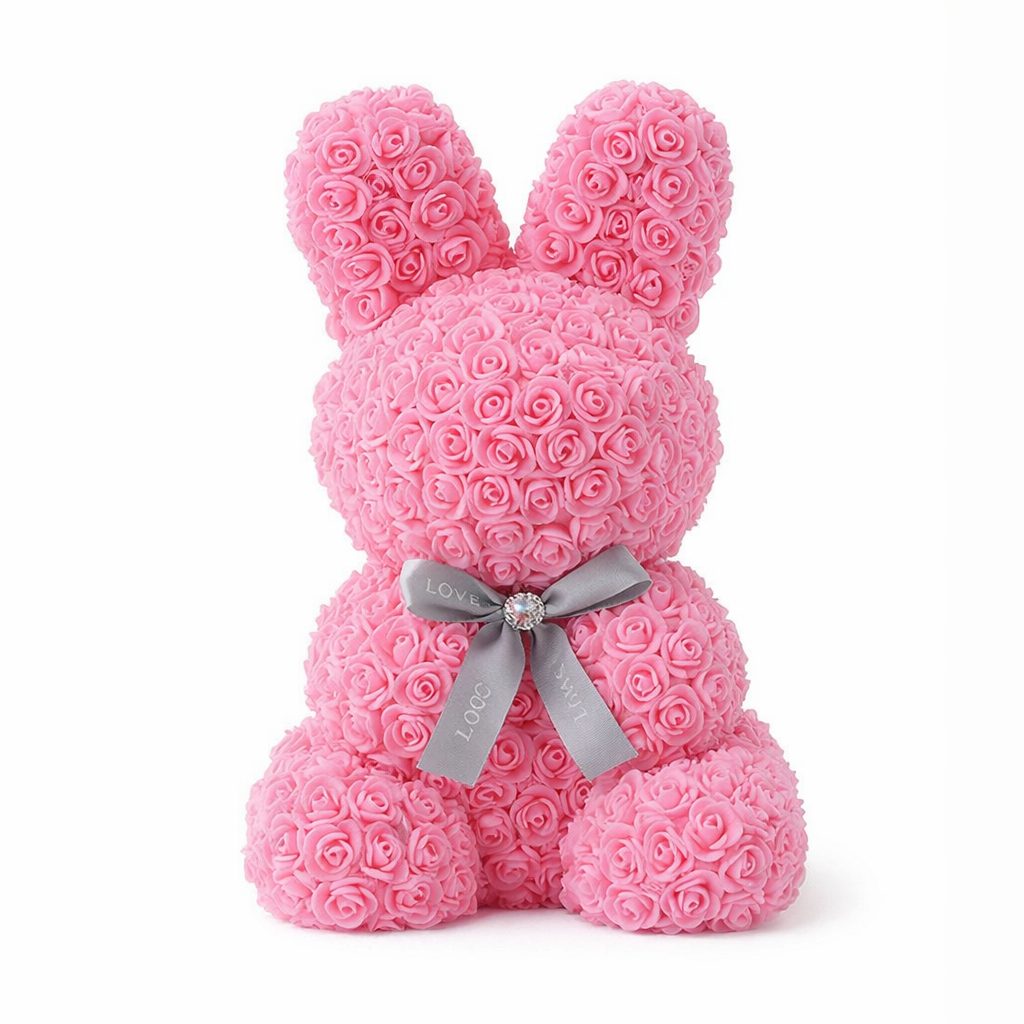 Заяц из роз розовый — созданный из более чем 500 великолепных 3D розочек.